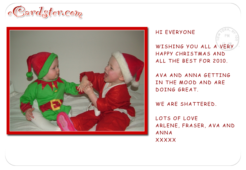 Fraser & Arlene, you did good, this is such a cuuuuuute photo. Gorgeous kids. Have a great xmas everyone & best wishes for 2010. xxxxxxxx