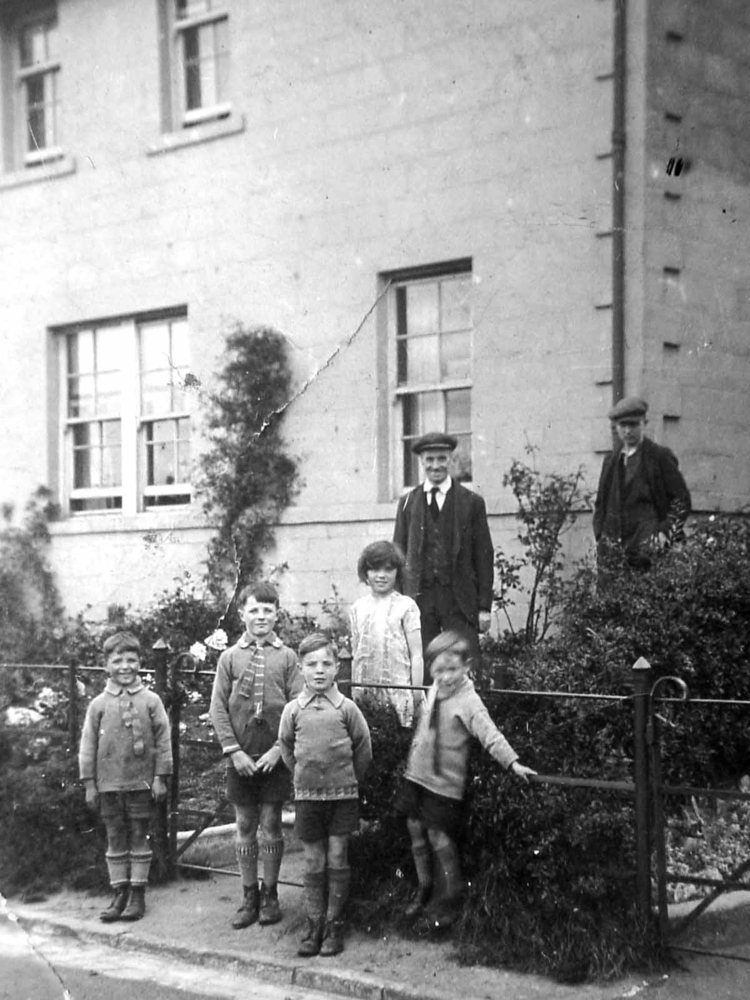 From Linda Russell: I was trying to think who the boys were is it Grandpa with …. Tom, Alex, Dad, Margaret & Stewart or Harry ??? how did I go, probably totally wrong hahahahaFrom Dave Milne: A couple (of the kids) are missing. Jimmy is at back behind Grampa. The girl looks like it could be Margaret. If so, then Mary is missing. The boys you’d have to guess at by age…Alec, I believe is missing. That should leave, left to right, Stewart, my dad, Harry and Tom, the youngest.